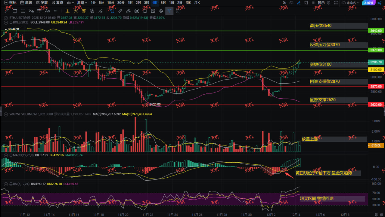 昨晚美國財長一句要降息,直接點燃加密市場,ETH直接衝破3200,。那今天你是打算跟着趨勢喫肉,還是在震盪裏被洗出去?ETH是真能衝上3370甚至幹到3640,還是半路掉坑回3100甚至探底2620?往下看,我給你扒得明明白白。