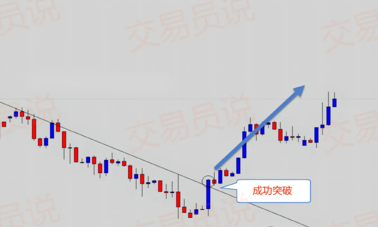 可以看到,上面這個K線才真的是突破了趨勢線,意味着接下來價格將成功突破: