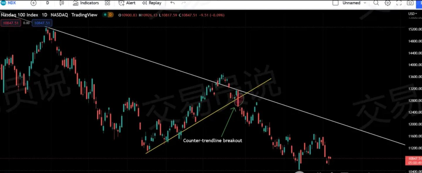 ✍ 反趨勢線突破策略:在該策略中,交易者會在價格回調階段繪製一條短期“反趨勢線”,當價格向趨勢方向突破這條反趨勢線時,即視爲入場信號。