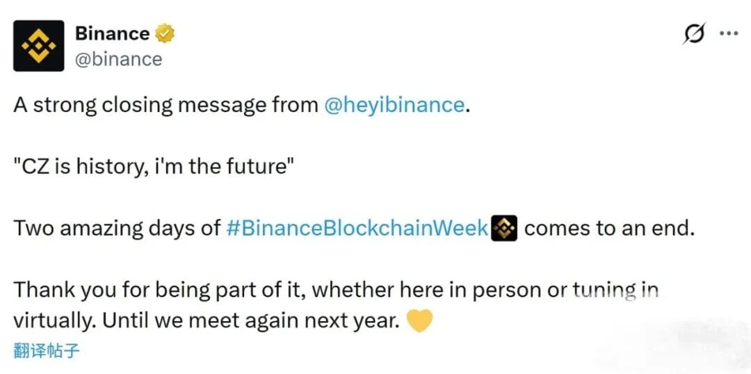 全球領先的加密貨幣交易平臺幣安(Binance)近期迎來重大管理層變動,引發行業廣泛關注。在備受矚目的幣安區塊鏈周活動圓滿閉幕後,新任聯合首席執行官何一通過幣安官方X(原Twitter)平臺發聲,以“CZ是歷史,我是未來”的鮮明表態,正式拉開幣安發展新篇章,彰顯了推動平臺戰略升級、開啓全新發展階段的決心與底氣。