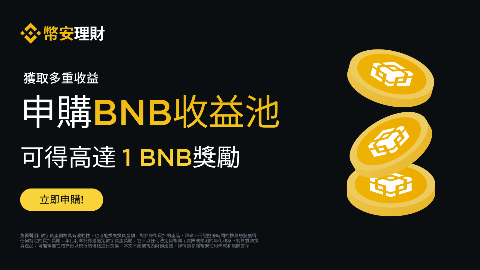 活動:申購BNB收益池,獲得最高 1 BNB獎勵