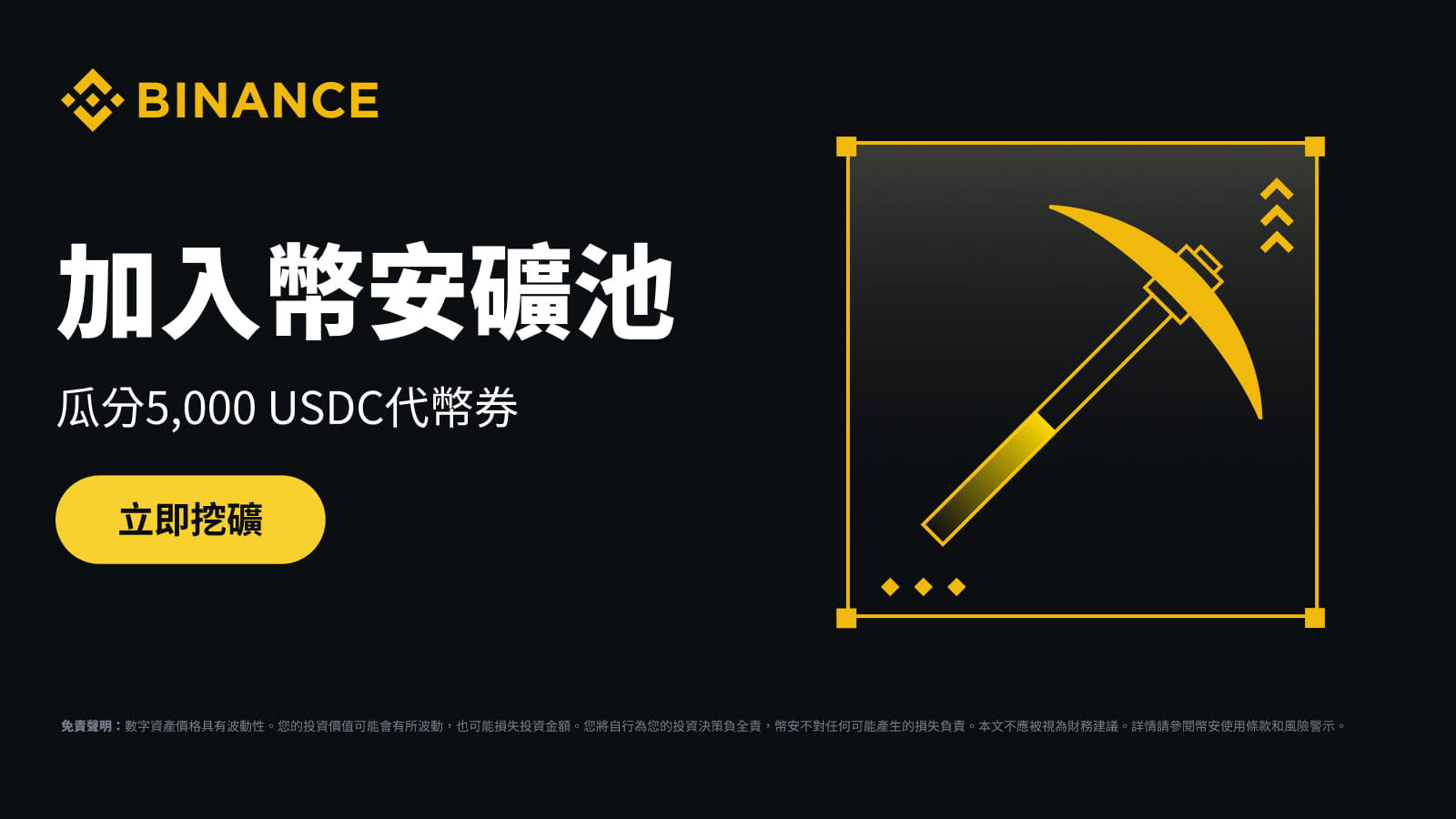 活動期間,於幣安礦池挖礦BTC並提升算力,即有機會瓜分最高5,000 USDC代幣券總獎池!