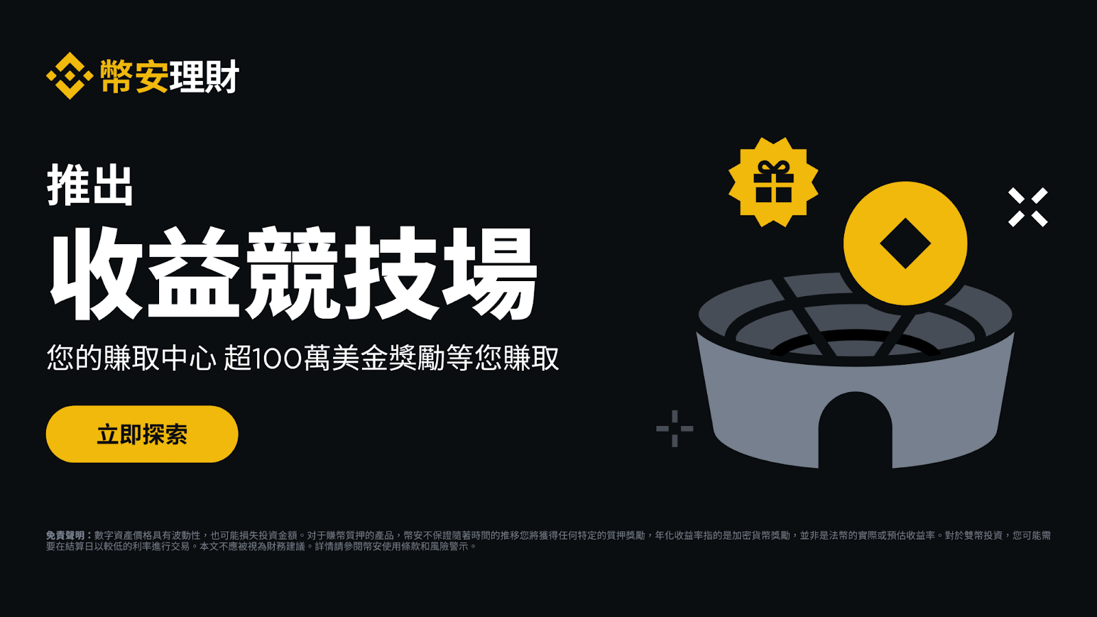 幣安理財宣布推出收益競技場(Yield Arena)。用戶可以探索並參與競技場各種活動,賺取獨家獎勵。其旨在為代幣持有者提供增長數位資產的機會。