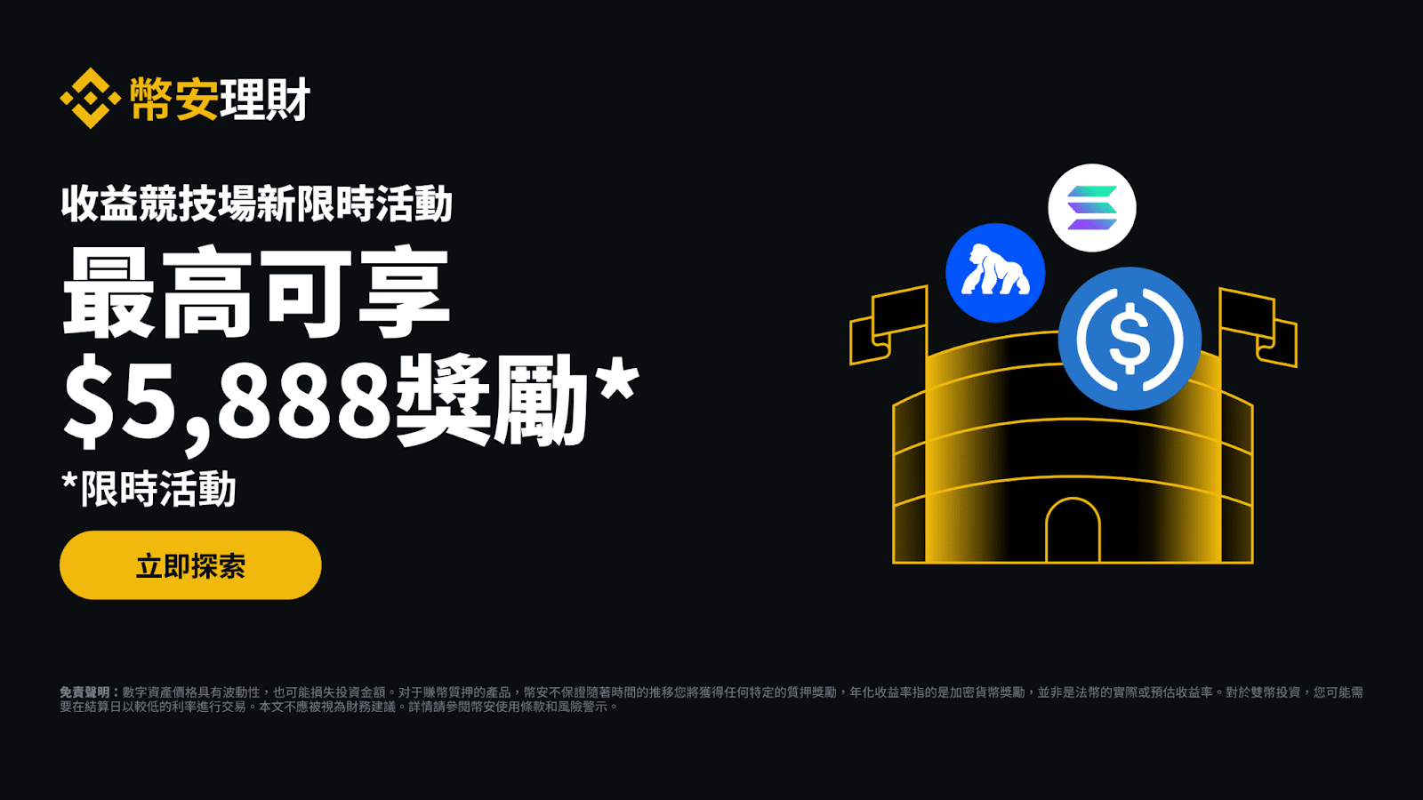 幣安理財競技場每週為您推出一系列新限時活動。請持續關注“幣安理財競技場”更多活動,透過幣安保本賺幣、ETH質押、SOL質押、雙幣投資等獲得收益。