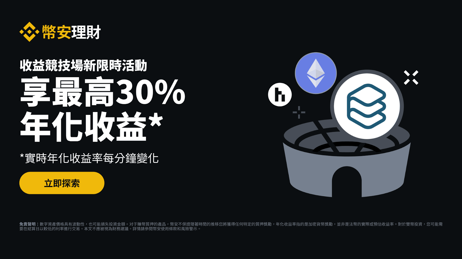 幣安理財競技場每週為您推出一系列新限時活動。請持續關注“幣安理財競技場”更多活動,透過幣安保本賺幣、ETH質押、SOL質押、雙幣投資等獲得收益。