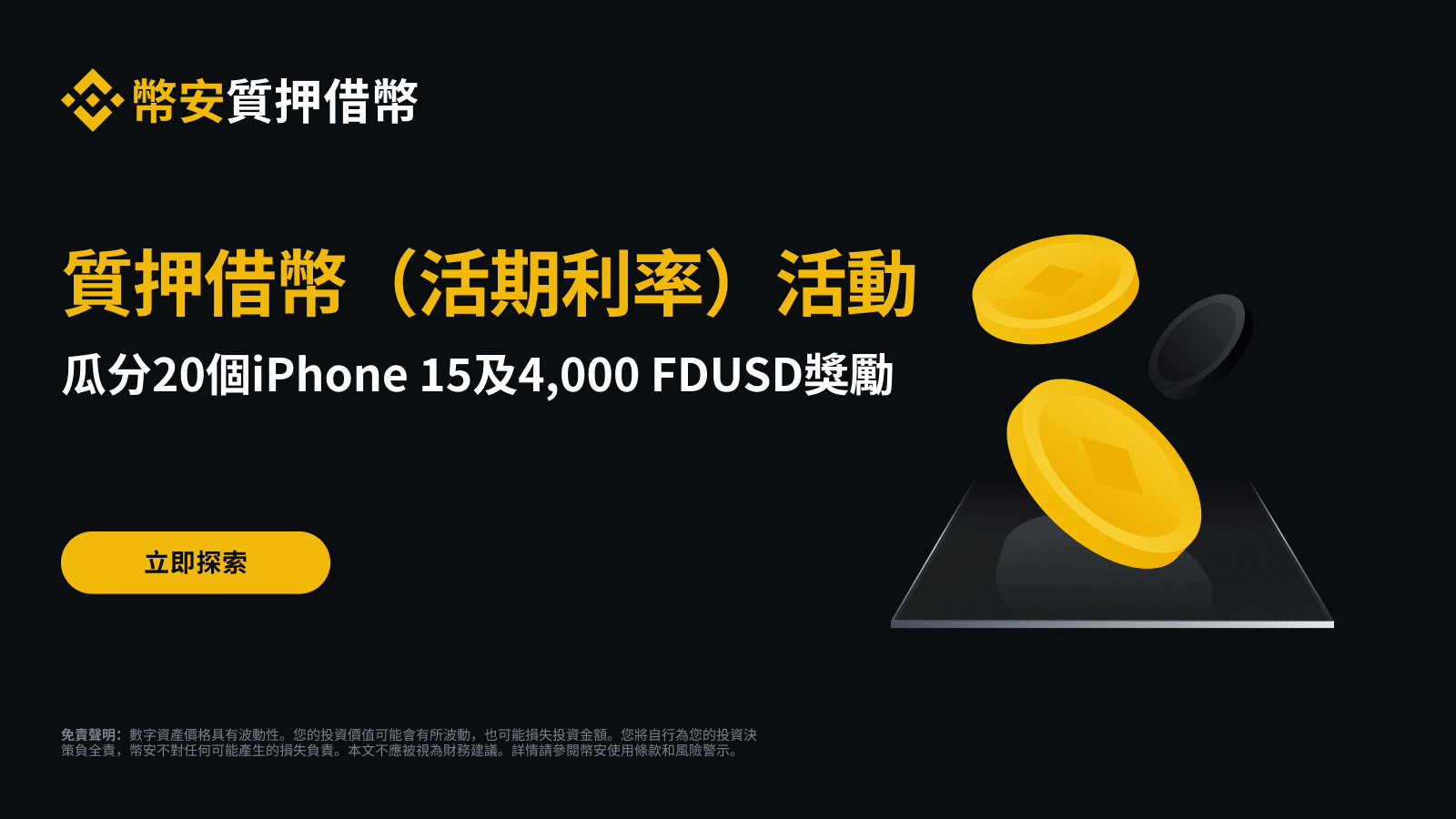 為慶祝質押借幣(活期利率)產品完成升級,幣安將推出新的質押借幣(活期利率)活動。活動期間,符合條件的用戶償還舊版質押借幣(活期利率)訂單並申請新的質押借幣(活期利率)訂單,將有機會瓜分20個iPhone 15和4,000 FDUSD獎勵。