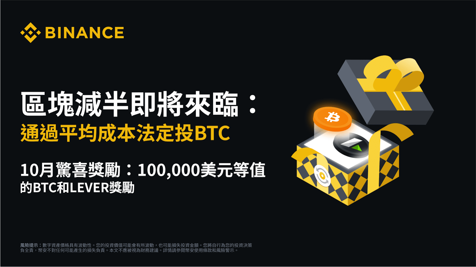 10月幣安推出兩項新的定投活動。每位用戶可以獲得最高2,000美元等值BTC代幣券,及免費定投LEVER每日計畫。