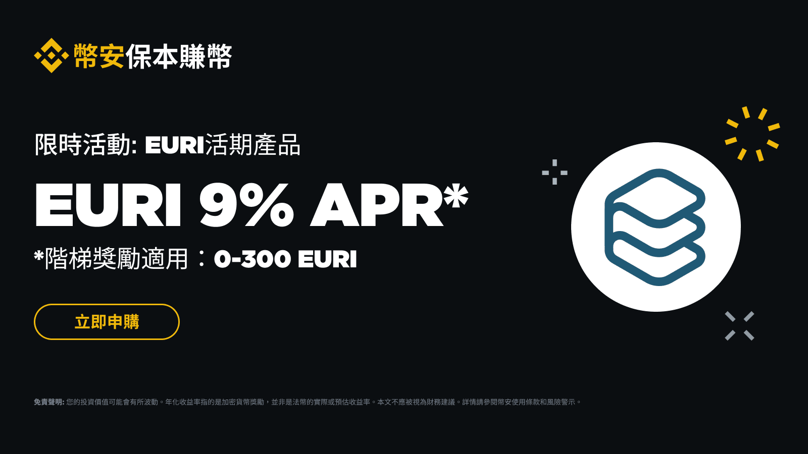 實時年化收益以及額外分級年化收益來源為幣安的自有資金,發放金額將根據對當前市場狀況的評估和評價而定。本活動與EURI發行方無關。