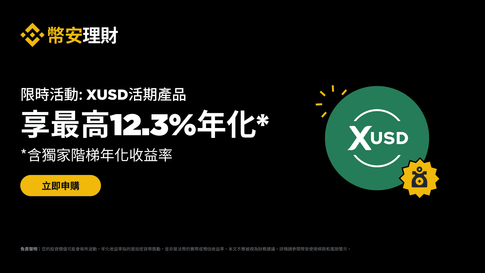 幣安理財推出XUSD保本賺幣活期產品活動!活動期間,申購XUSD保本賺幣活期產品的用戶,可享受最高12.3%年化收益率,包含獨家階梯年化收益率和實時年化收益。