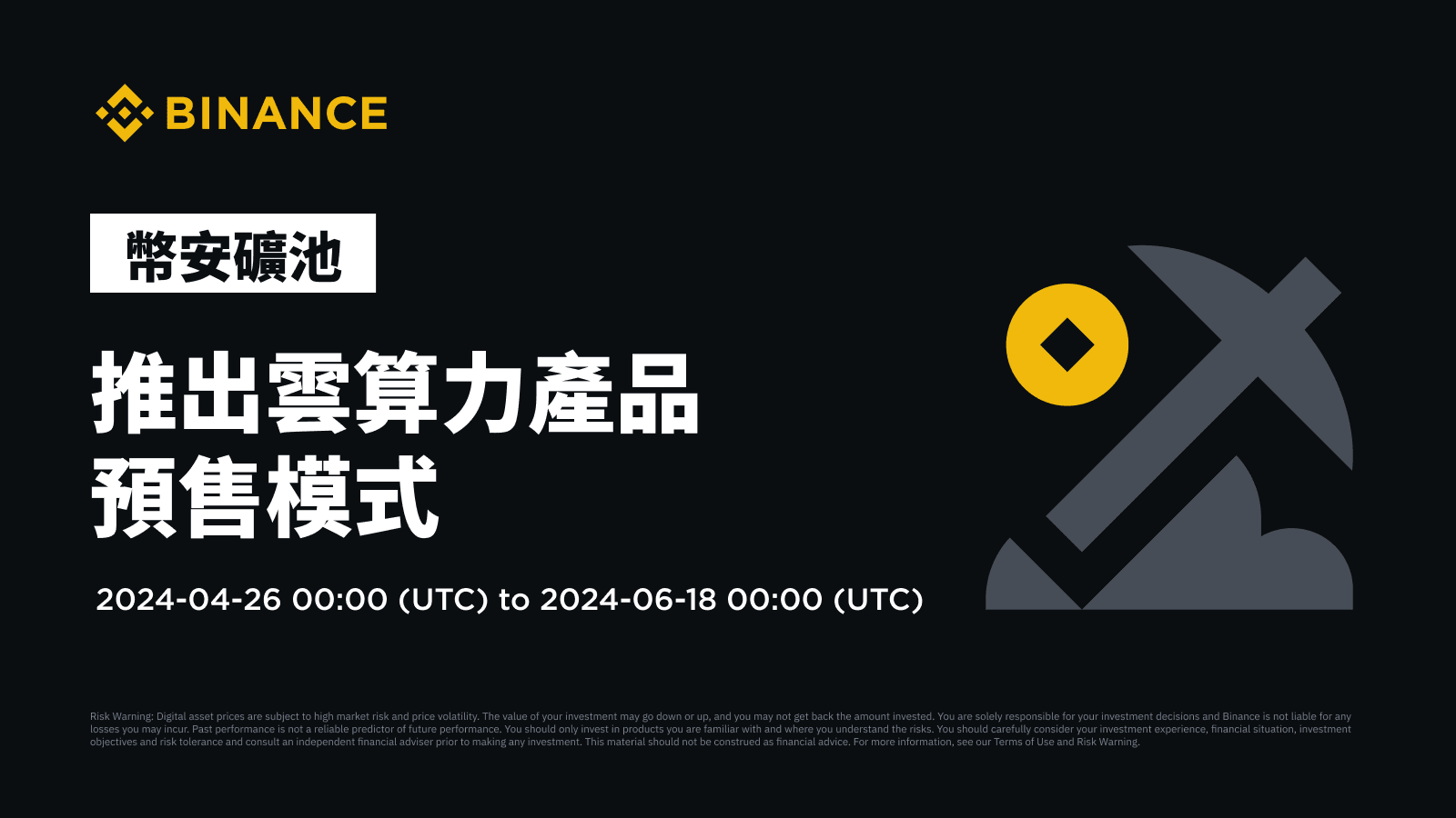 幣安即將推出用於BTC挖礦的雲算力預售產品。預售期間,購買該批次雲算力產品的用戶可享受雲算力管理費7折優惠。