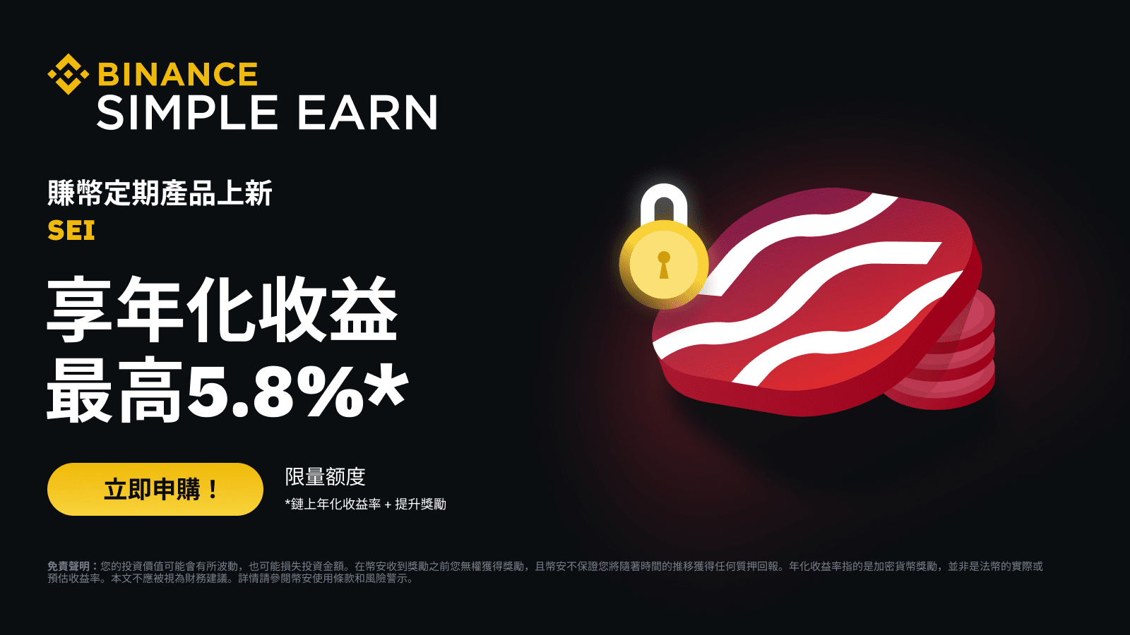 幣安賺幣平台將於2023年12月26日20:00(東八區時間)上線SEI定期產品,申購即可獲得收益,邀您體驗。