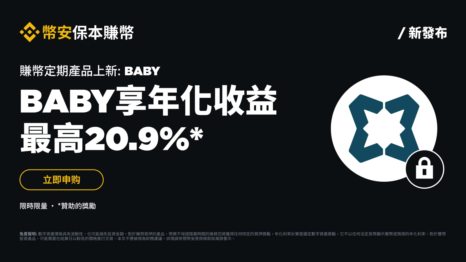 幣安保本賺幣平台將推出Babylon(BABY)定期產品專屬活動!活動期間申購BABY定期產品的用戶,享最高20.9%*年化收益率。