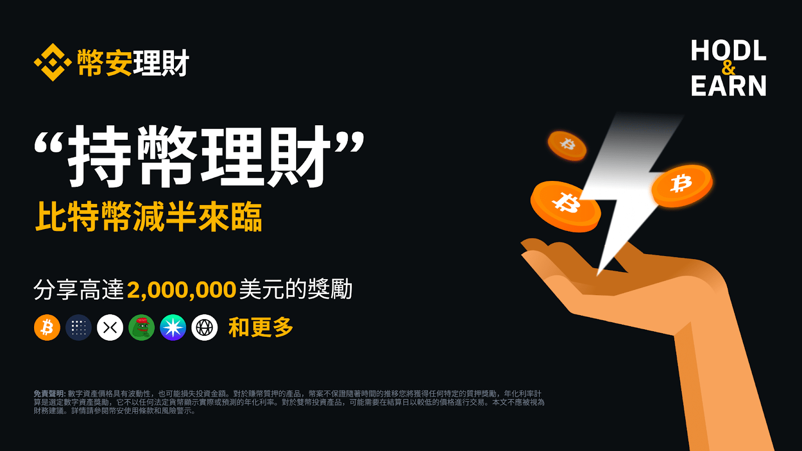 幣安將推出一系列幣安理財活動,與社區共同“持幣理財”迎接即將到來的2024年比特幣減半!